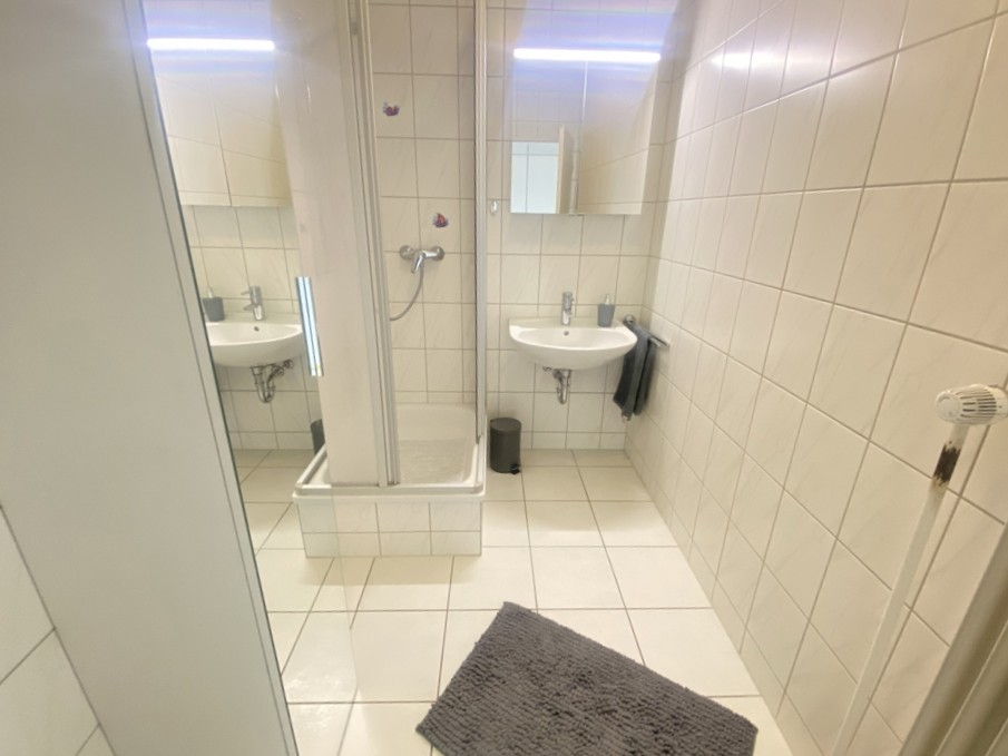 Bäder: Die Wohnungen auf der linken Seite, sowie die zwei Appartements, verfügen über innenliegende, weiß geflieste Bäder. Die Bäder in der rechten Haushälfte sind ebenfalls weiß gefliest und verfügen zusätzlich über ein Fenster. Je nach Größe der Bäder sind diese mit Dusche und/oder Badewanne ausgestattet.
