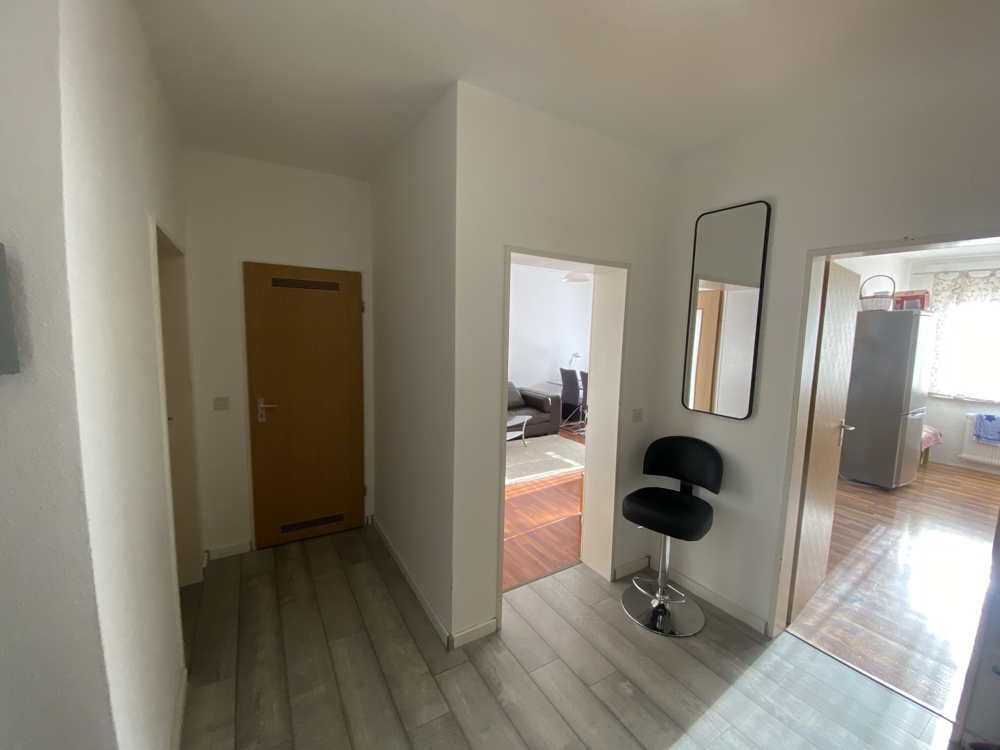66 m² Wohnfläche mit einer gelungenen Raumaufteilung. Der zentral gelegene Flur bildet das Herzstück der Wohnung und ermöglicht den Zugang zu sämtlichen Räumen. In allen Wohnräumen sowie in der Küche ist Laminatboden in unterschiedlicher Holzoptik verlegt, während der Flur mit grauem Klick-Vinylboden ausgestattet ist. Das Badezimmer verfügt über helle Bodenfliesen, eine Duschwanne sowie einen Waschmaschinenanschluss. Ein zusätzlicher Abstellraum sorgt für praktischen Stauraum. Die großzügige, nach Süden ausgerichtete Loggia mit viel Sonneneinstrahlung rundet dieses attraktive Angebot ab. Beheizt wird die Wohnung über eine Gaszentralheizung mit Warmwasserbereitung. Kunststofffenster mit Isolierverglasung, Rollläden an sämtlichen Fenstern sowie ein elektrischer Türöffner gehören ebenfalls zur Ausstattung. Überzeugen Sie sich selbst von den Vorteilen dieser Wohnung und senden Sie uns gerne Ihre Anfrage.
