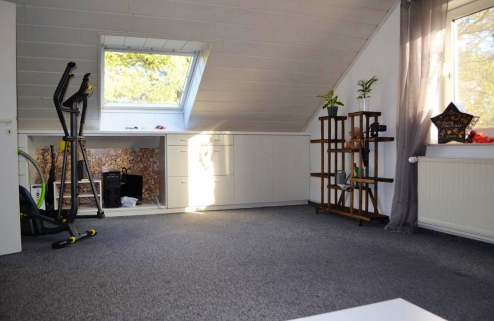 Der Flur verbindet alle Räume miteinander. Die komplette Wohnung (ausgenommen Bad und Küche) ist mit einem pflegeleichten Teppichboden ausgestattet. Wohnzimmer und Essbereich sind voneinander getrennt. Der separate Essbereich befindet sich praktischerweise gegenüber der Küche. Die vorhandene Einbauküche ist mit sämtlichen Elektrogeräten (z. B. Spülmaschine, Kühlschrank etc.) ausgestattet. Ein vorhandener Abstellraum bietet zusätzlichen Stauraum. Das Tageslichtbad ist hell gefliest und verfügt über eine Dusche, Doppelwaschbecken, WC und Fenster. Das Highlight dieser Wohnung ist der eigene Gartenteil mit gemütlicher Sitzecke. Die Gartenpflege obliegt dem Mieter; ein hierfür benötigter Rasenmäher wird gestellt. Beheizt wird die Wohnung über eine Gasetagenheizung (Warmwasserbereitung über Therme). Zur weiteren Ausstattung gehören: Kunststofffenster mit Isolierverglasung und Rollläden bzw. Velux-Dachflächenfenster, diverse Staufächer unterhalb der Schrägen, Garderobe im Flur und auf dem Etagenabsatz, Carport-Stellplatz und einen weiteren Stellplatz.